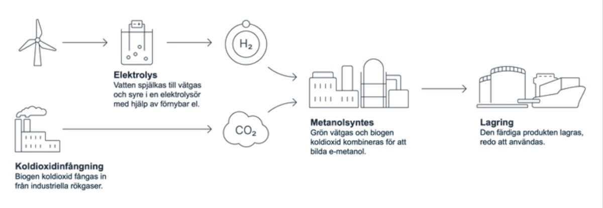 Den planerade anläggningen kommer att integreras med Övik Energis biobränslebaserade kraftvärmeverk vilket skapar ett mycket effektivt och cirkulärt energisystem. Med hjälp av förnybar el kommer anläggningen att producera grön vätgas genom elektrolys och kombinera detta med 150 000 ton infångad biogen CO₂ från kraftvärmeverket för att producera 100 000 ton e-metanol per år. Detta möjliggör undvikande av 200 000 ton CO₂e årligen.