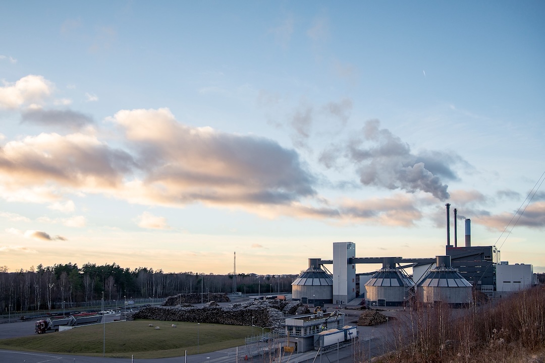 Växjö Energis kraftvärmeverk Sandviksverket, där restprodukter från skogsindustrin – som grenar, toppar och bark – används för att skapa både värme och el i samma process, producerar cirka hälften av elbehovet för Växjö stad.